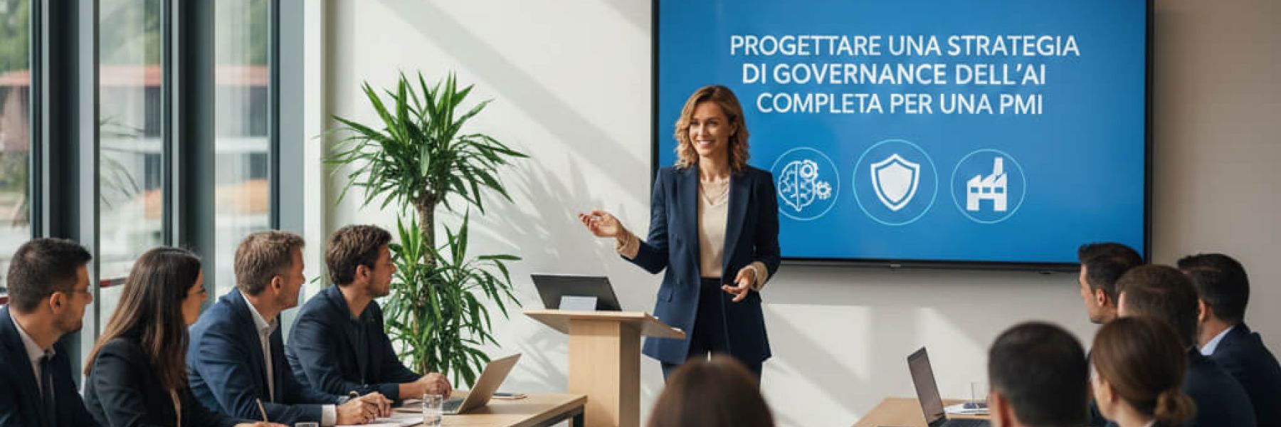 AI come leva strategica, mappatura use case, priorizzazione e fattibilità, modello operativo e governance, change management, roadmap e roi, AI act e compliance, etica, rischio reputazionale, capitale umano e cultura aziendale.